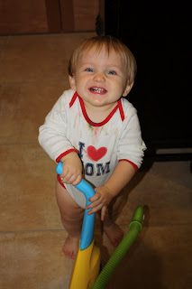 He's discovered M&M's...and he a monster! Left this in the pantry not closed well and Hud spilled them. We couldn't pick them up fast enough. He kept trying to get them before we could. It was really funny.